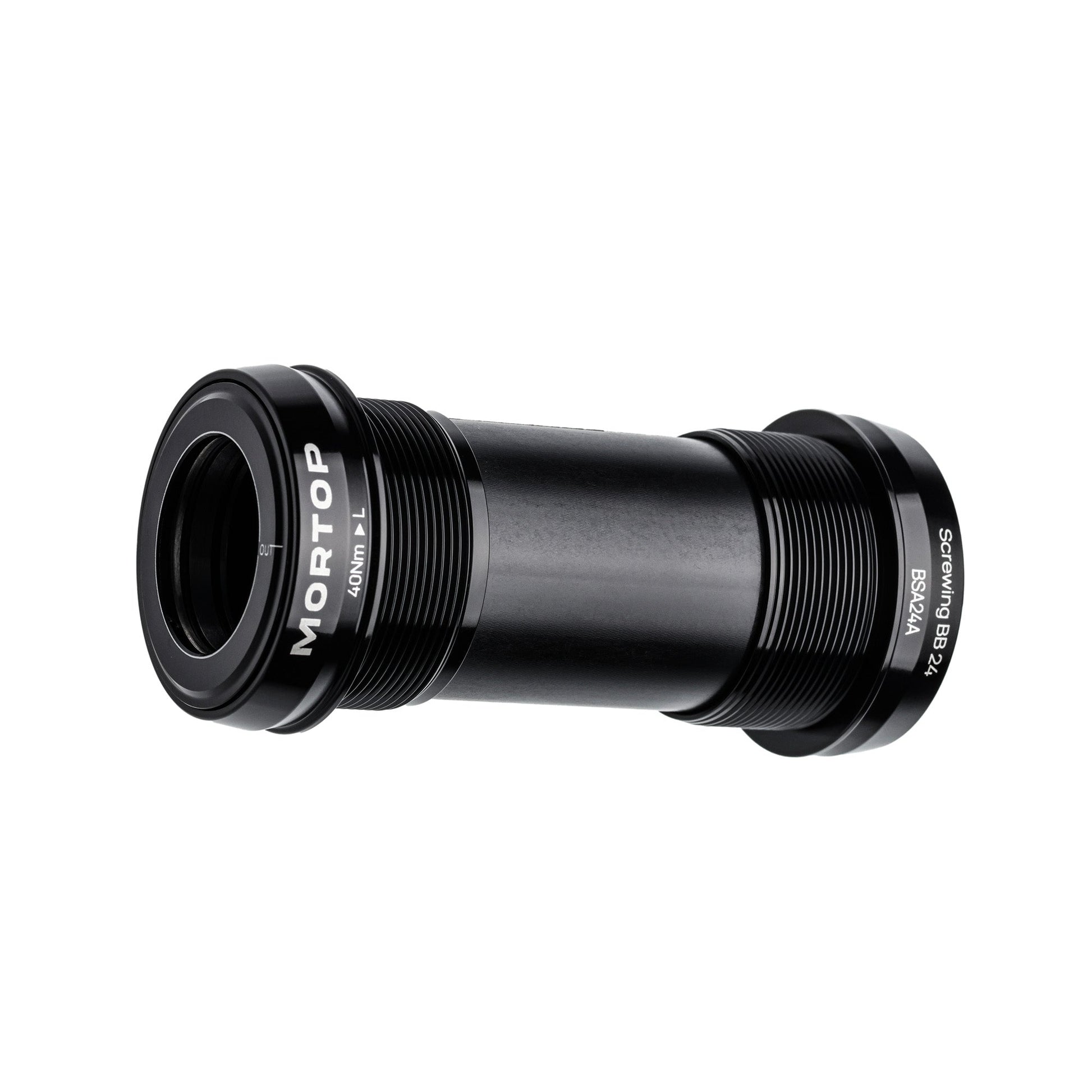 Screwing BB 24 is a threaded bottom bracket suitable for 24mm spindle HT Ⅱ and SRAM GXP 22/24 mm. Adopt 24 mm Cartridge ball angular contact bearing relies upon the magic formula grease flow the inner to smooth the ball surface to maximize your power to accelerate your speed.